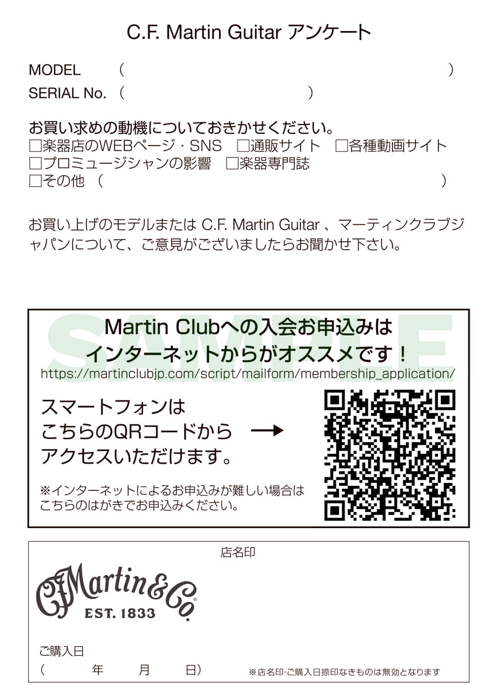 ※マーティンクラブに入会をご希望されない方は『入会を希望する』『既に入荷済』欄は空欄のままご返送ください。